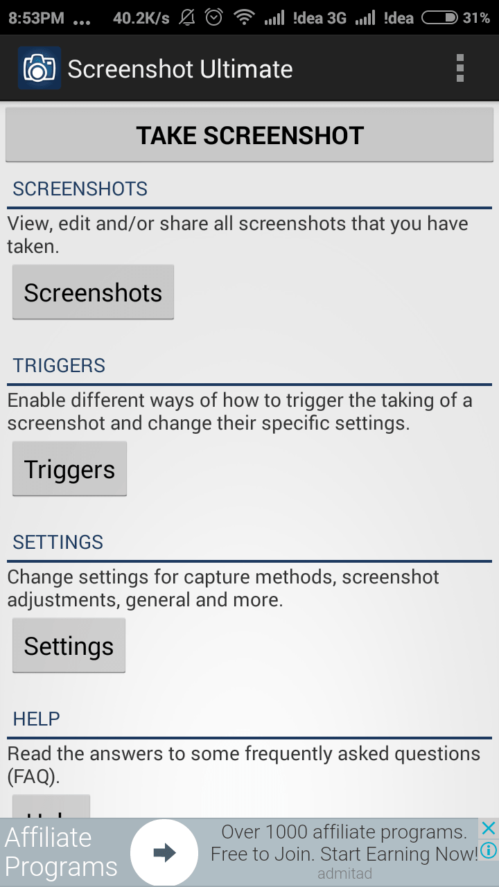 Using Screenshot Ultimate, it is extremely easy to take a screenshot. If you configured the application correctly, and you own a rooted Android device, there is nothing else you have to do other than tap the “Take Screenshot” button at the top. It will immediately minimize the application. Then you can navigate to the place where you have to capture the screenshot. After that, just press the screenshot shortcut of your device and it will capture the screenshot as usual. But the only difference is that, instead of displaying a flashing screen, it will take you to the Screenshot Ultimate app.